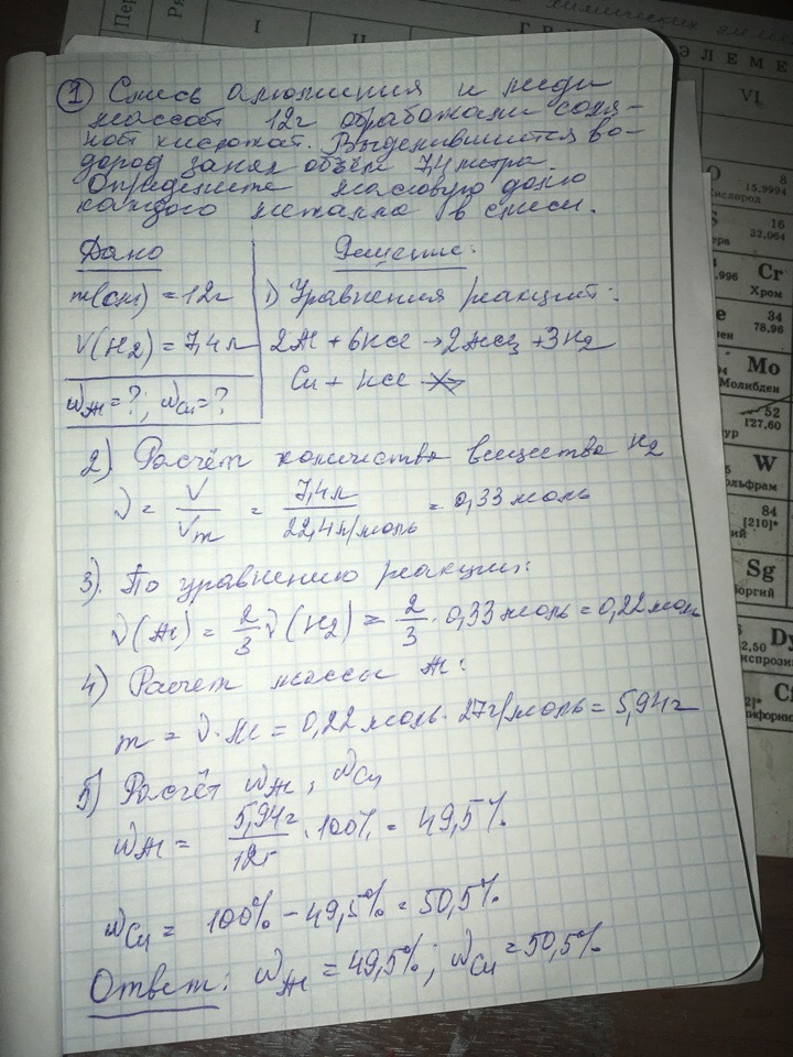 смесь алюминия и меди массой 12 г обработали соляной кислотой. выделившийся водород занял объем 7,4 л(н.у.). определите массовую долю каждога металла в смеси.