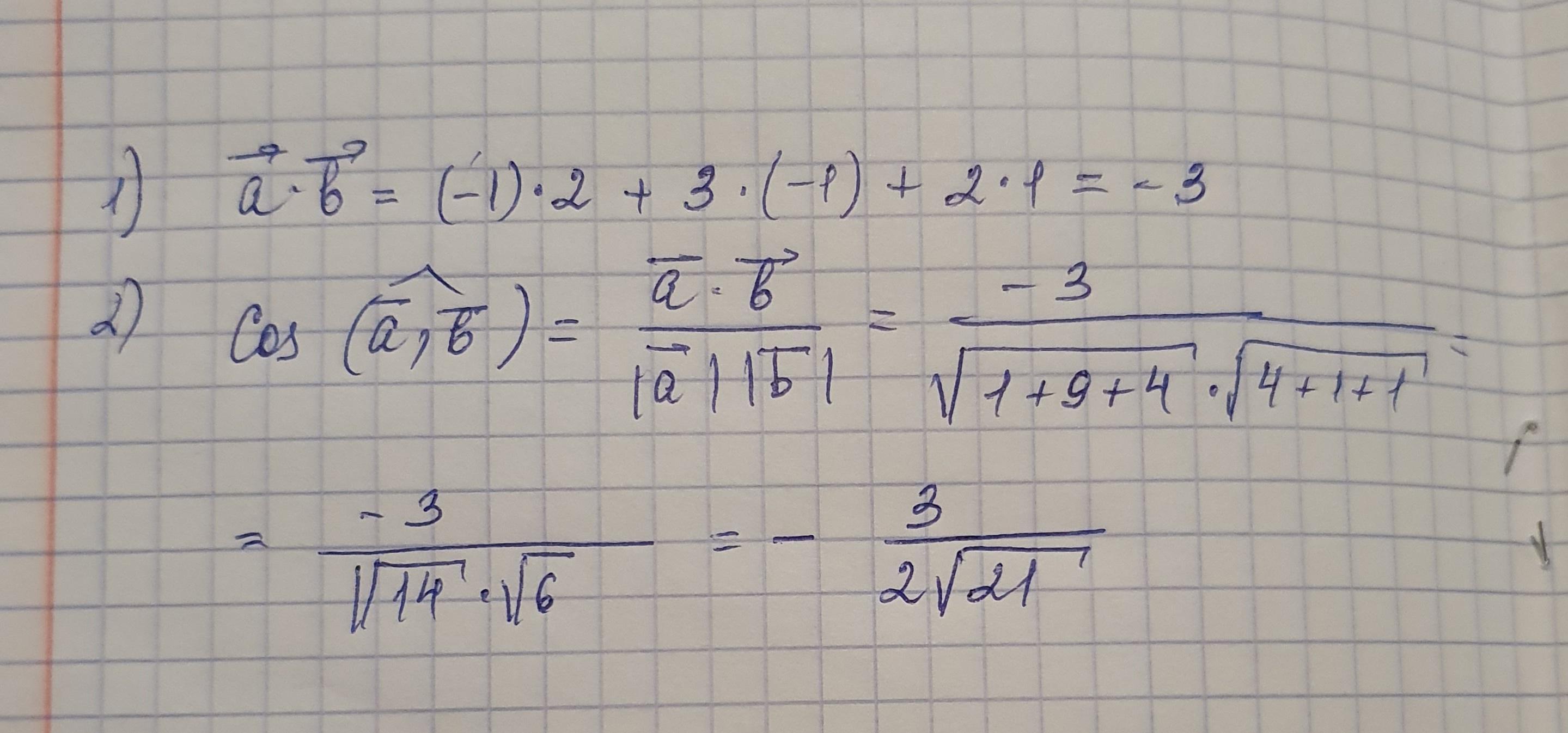 Даны векторы а (-1; 3; 2) и b (2; -1; 1) а) найдите скалярное произведение векторов (а+b)(a-b) б) найдите косинус угла между векторами а и б