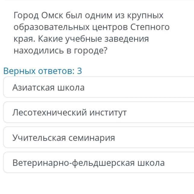 Город Омск был одним из крупных образовательных центров Степного края. Какие учебные заведения находились в городе?