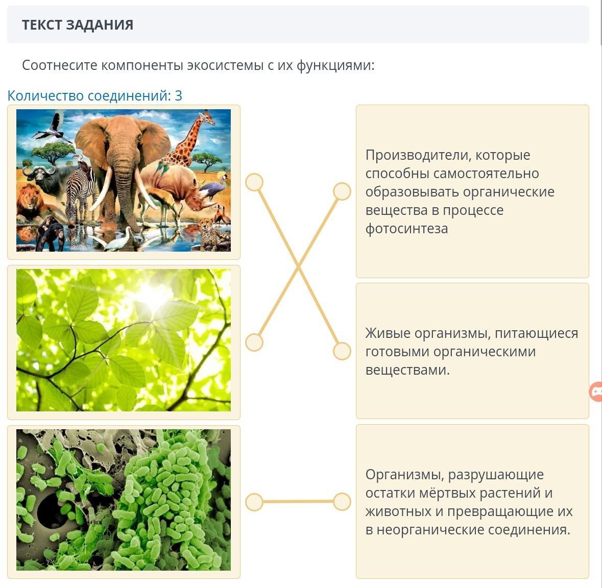Соотнесите компоненты экосистемы с их функциями: