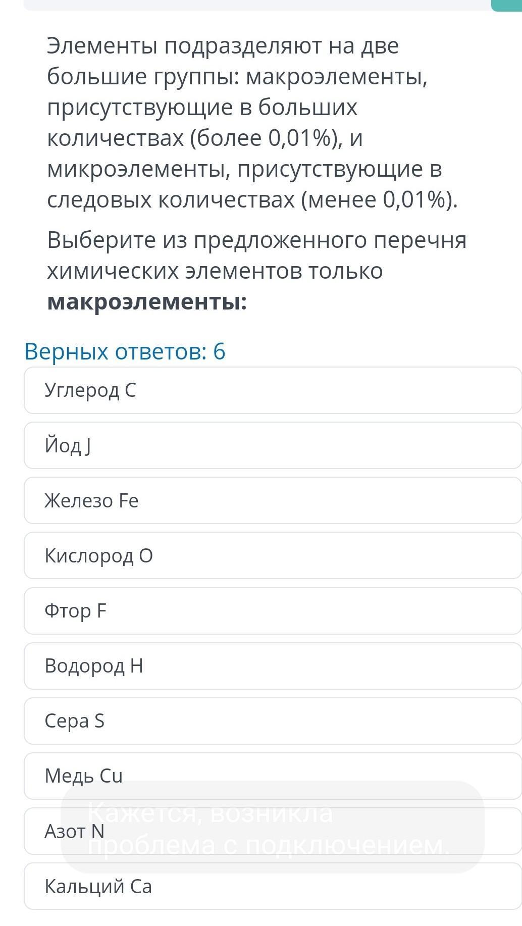 кислород, углерод, азот, водород, сера, железо, кальций