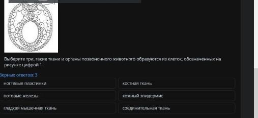 выбери три rакие ткани и органы позвоночного животного образуются из клеток обозначенных на рисунке цифрой 1