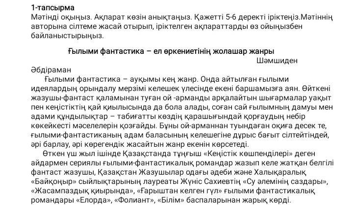 1-тапсырма Мәтінді оқыңыз. Ақларат көзін анықтаңыз. Қажетті 5-6 деректі іріктеңіз. Мәтіннің авторына сілтеме жасай отырып, іpіктелген ақлараттарды өз ойыңызбен байланыстырыңыз.