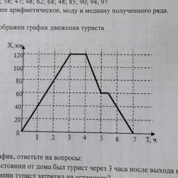 а) На каком расстоянии от дома был турист через 3 часа после выхода из дома?