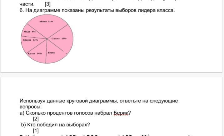 Используя данные круговой диаграммы, ответьте на следующие вопросы: