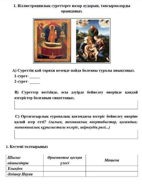 С) Қоғамдағы жаңа ойлар, жаңа істеп шығару құралдары адамдарды ғылым мен білімді меңгеруге итермелегеннен соң бейнелеу де де өзгерістер пайда болды