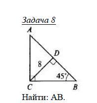 Дано: CD = 8, CBD = 45°, ACB = 90°, CDB = 90°