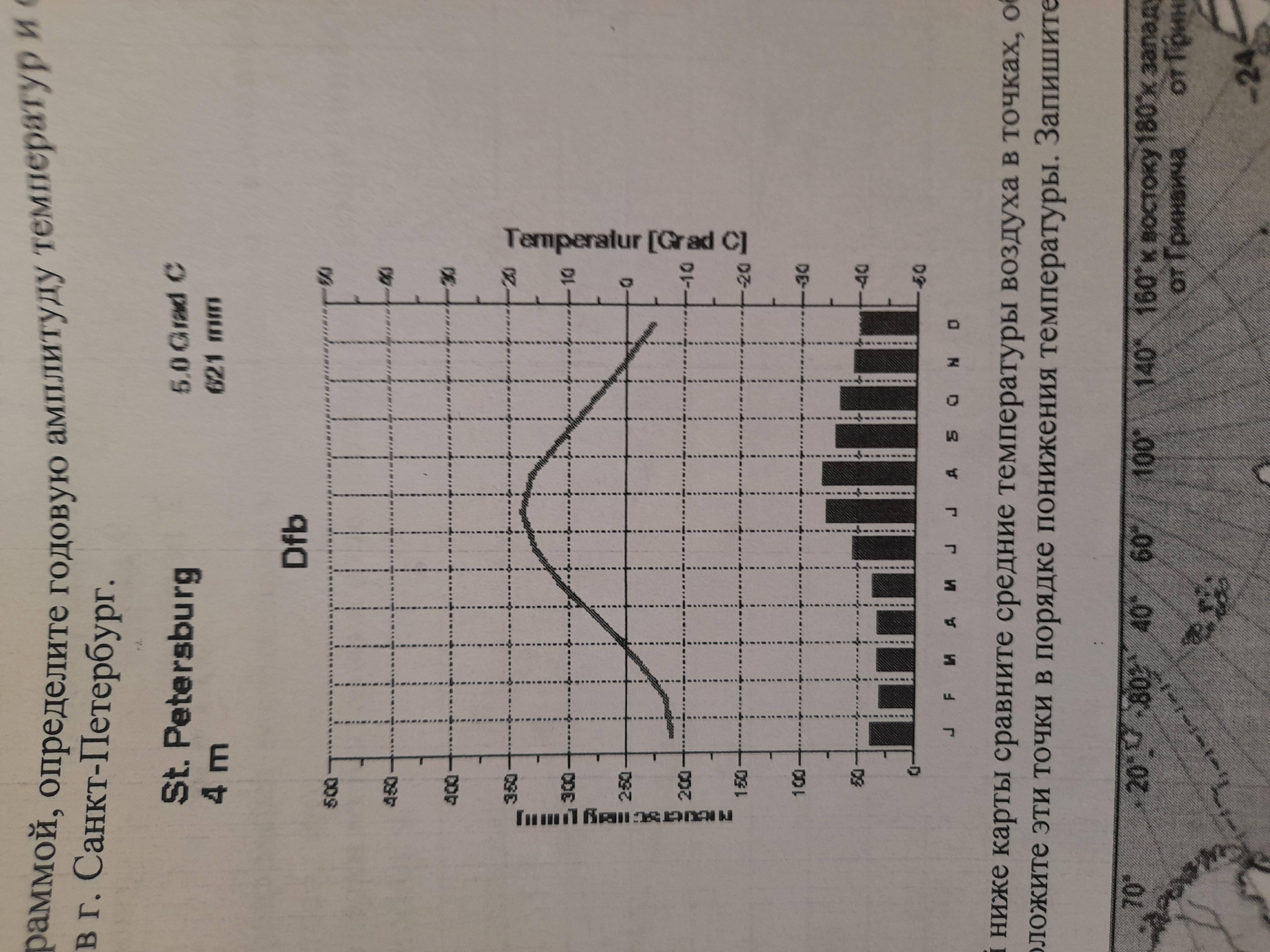 Пользуясь климотограммой опредилите годовую амплитуду температур и средне годовое количество осадков в Санкт петербурге