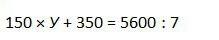 150 x У + 350 = 5600: 7