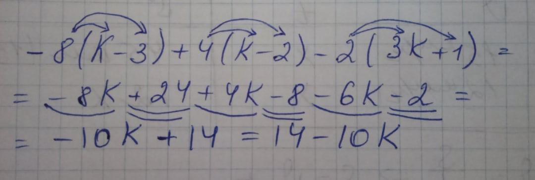 Ответ: 14-10K. Необходимо раскрыть скобки и привести подобные слагаемые