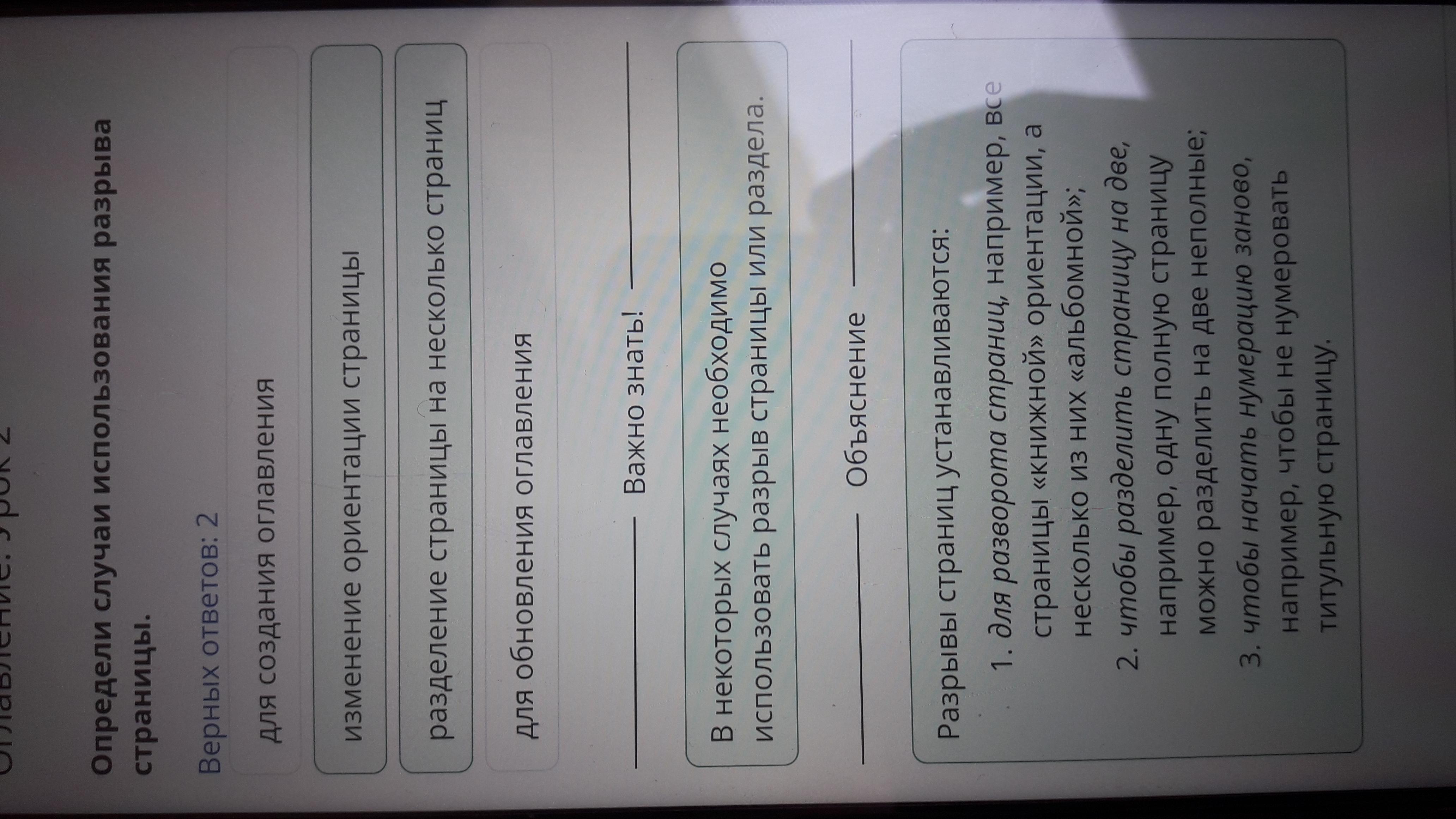 Определите случаи использования разрыва страницы (Верных ответов: 2)Несколько вариантов выбора.