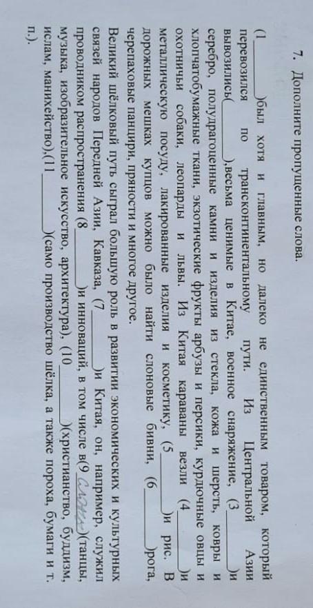 1. шелк 2 фарфор 3золото 4 кони 5 чай 6 носорожьи 7 среднейазии 8 технологий 9 искусстве 10 религии 11 технологии