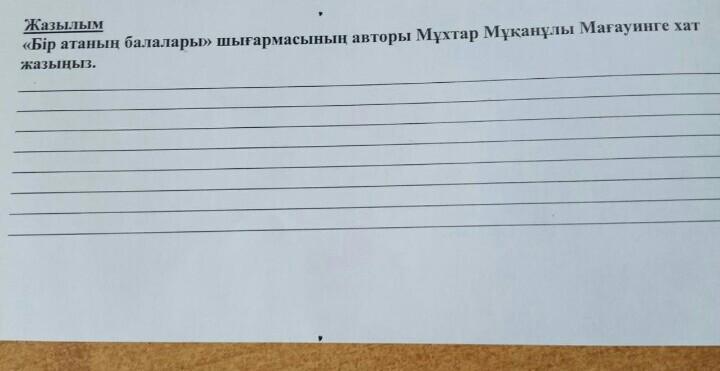<<Бір атаның балалары>> шығармасың автор Мұхтар Мұқанұлы Мағауинге хат жазыңыз