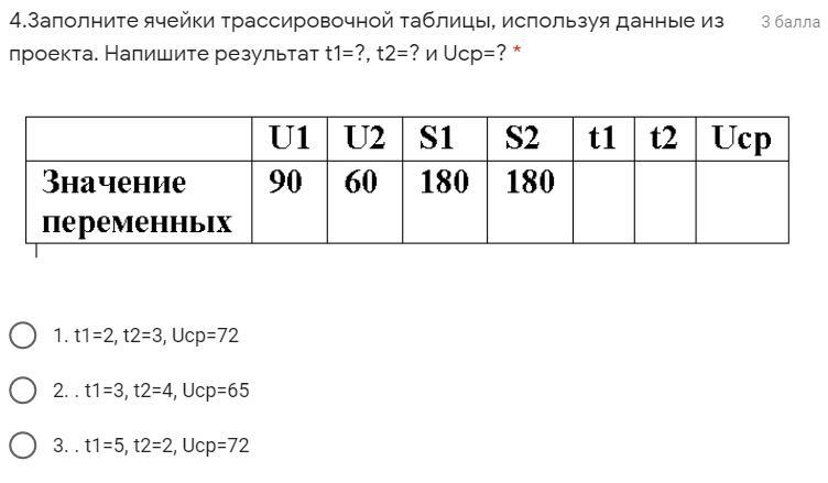 Т.к. S1 = 180, а U1 = 90, t1 = 180/90 = 2, а среди вариантов только в первом варианте t1 = 2, так что дальше можно не считать)
