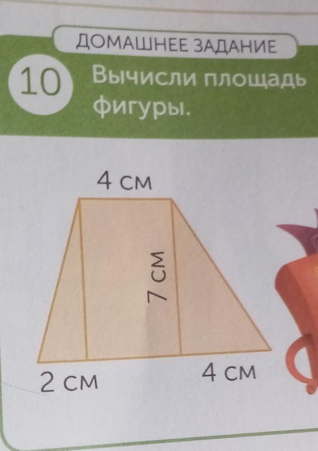 S = ((4 + 10)/ 2) · 7 = 7 · 7 = 49 см² - площадь фигуры.