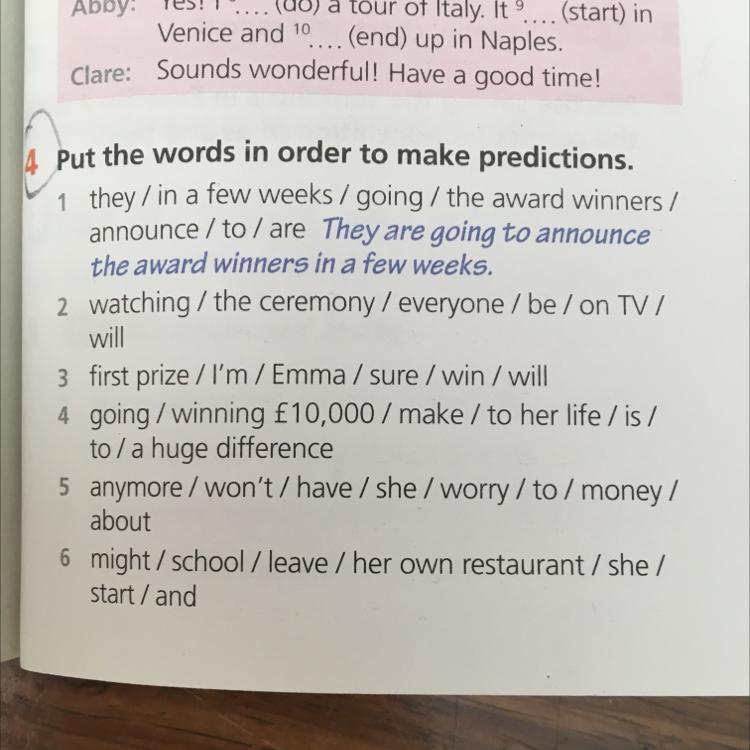 4 Put the words in order to make predictions.