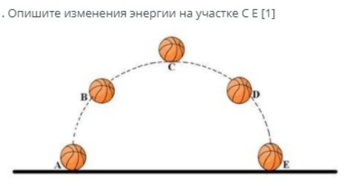 По мере падения мяча его кинетическая энергия растёт, а потенциальная - убывает. В точке D энергия равна: