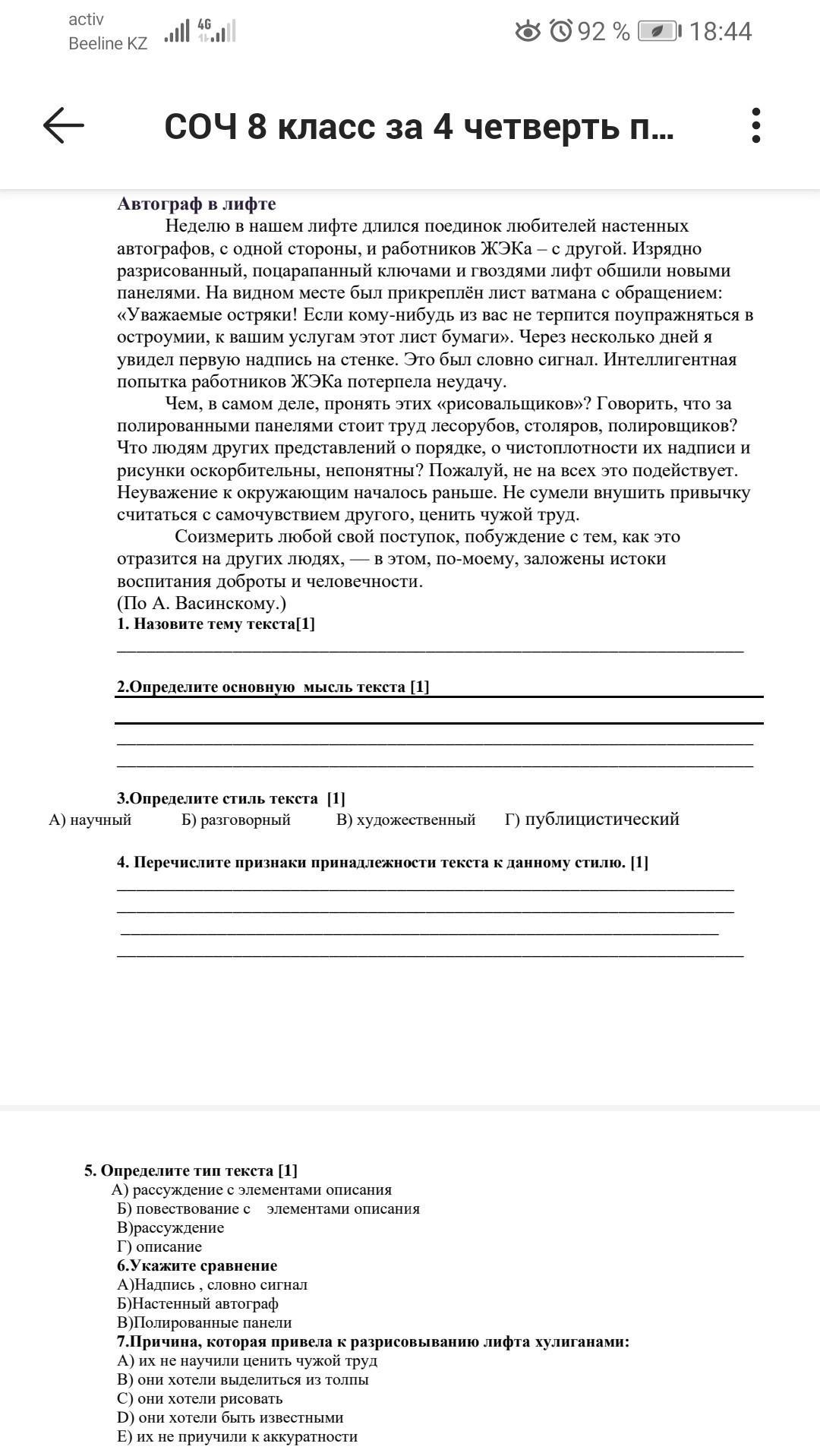 1. Тема текста: рассказ о том, как хулиганы разрисовывали лифт.