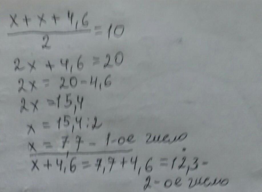 12. Среднее арифметическое двух чисел, одно из которых на 4,6 боль-