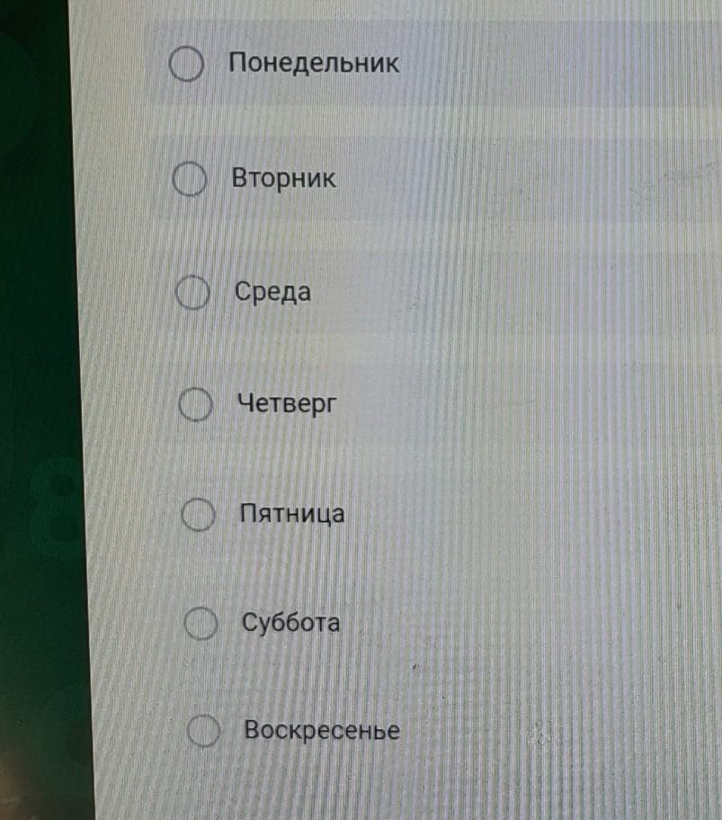 Среда - 1 = вторник -1 = понедельник - 1 =воскресенье - 1 = суббота - 1 = пятница + 1 = суббота .