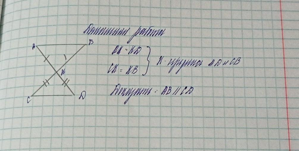 Треугл. ABH = CDH (по двум сторонам и углу между ними):