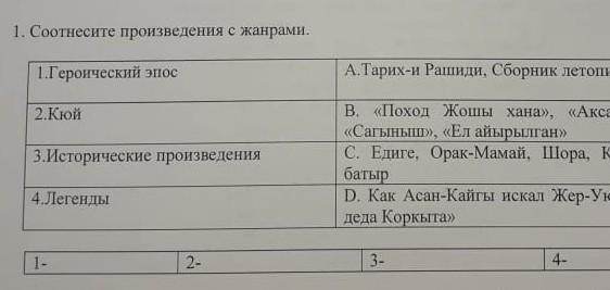 Ответ: 1-А, 2- С, 3-D, 4-B