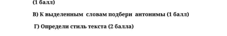 Срочно пожалуйста!!!!! Помогите!!!! Г)К выделенным словам подбери антонимы. В) определите стиль текста.
