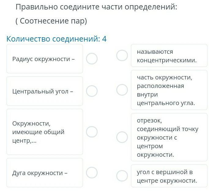 радиус окружности - отрезок, соединяющий точку окружности с центром окружности.