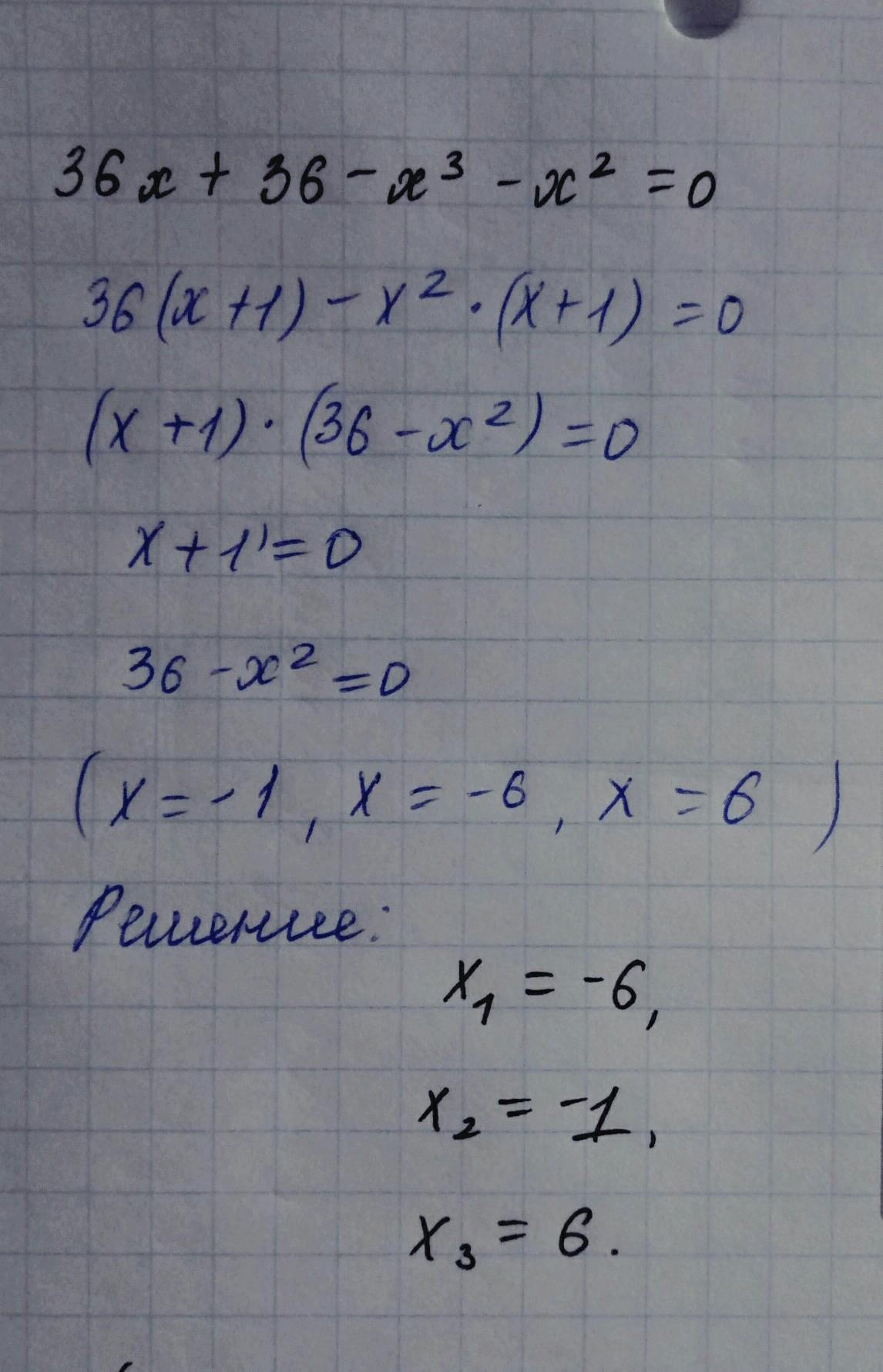 Реши уравнение 36x+36−x3−x2=0.