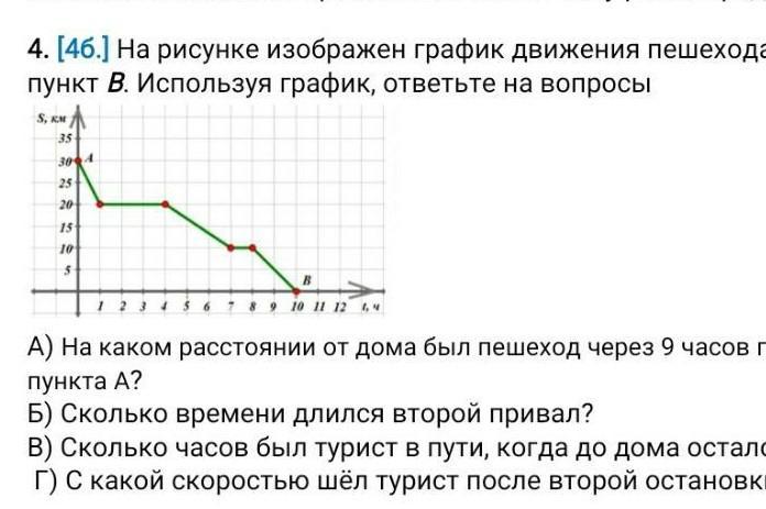 4. [4б.] На рисунке изображен график движения пешехода из пункта Ав