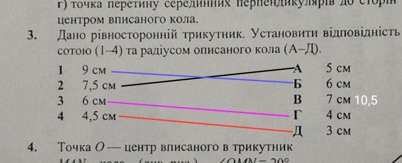 Дано рівносторонній трикутник який радіус кола описаного навколо нього, якщо висота 9 см.