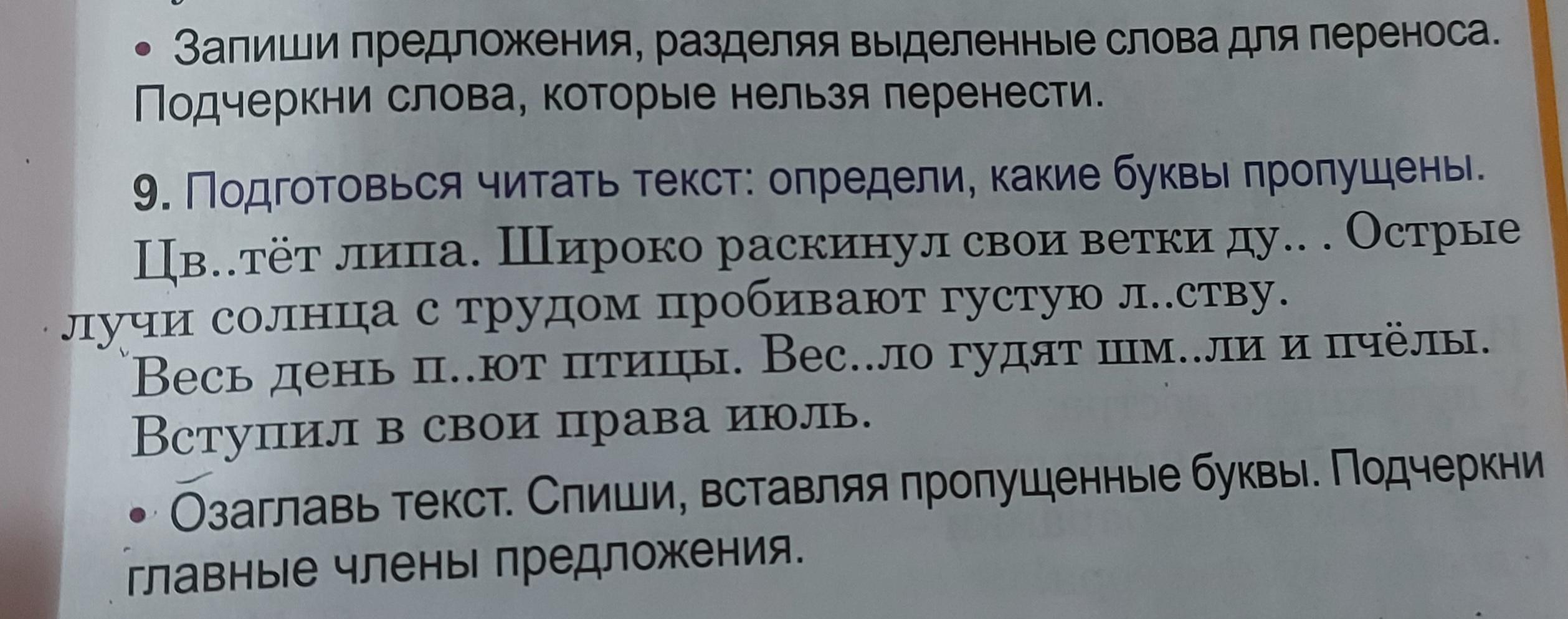 Цветёт липа.( липа существительное, цветёт глагол). Широко раскинул свои ветки дуб.( дуб существительное, раскинул глагол). Острые лучи солнца с трудом пробивают густую листву.( лучи существительное, пробивают глагол).