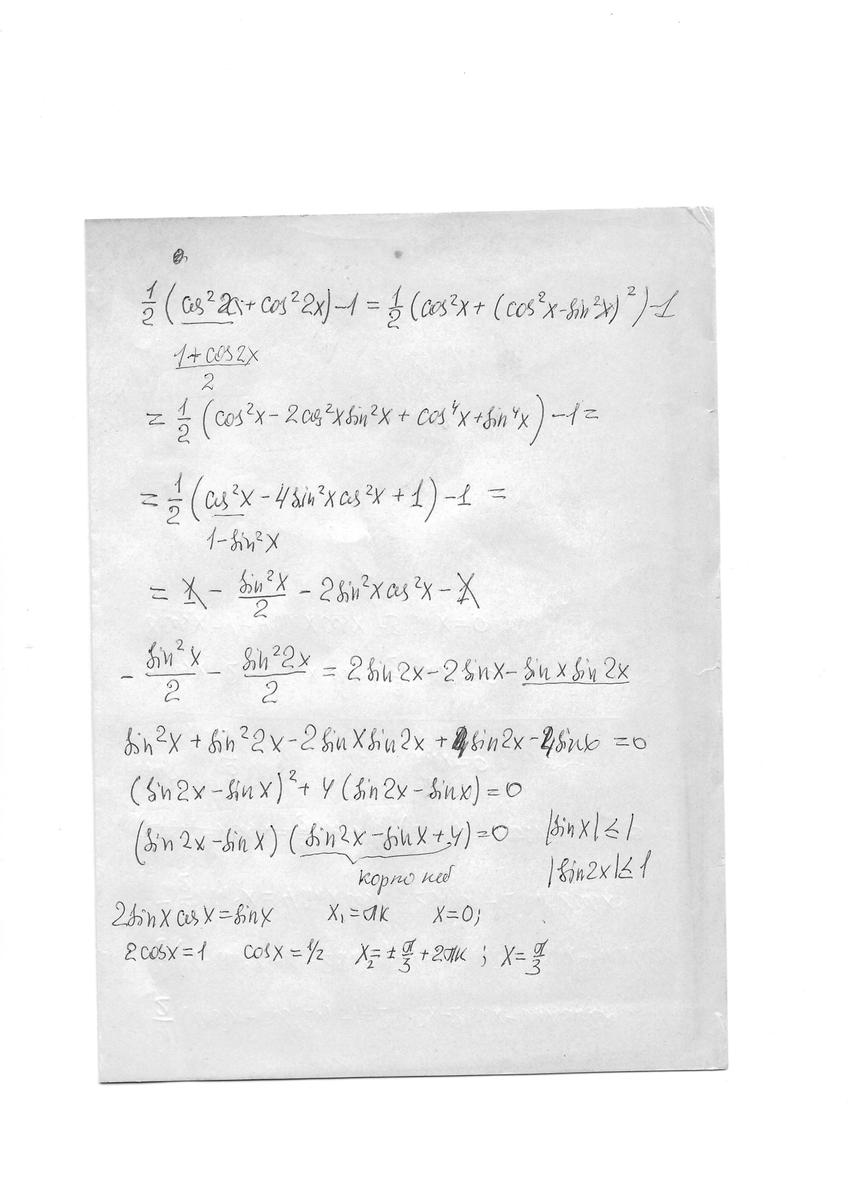 0,5(cos^2(x)+cos^2(2x))-1=2sin2x-2sinx-sinx*sin2x