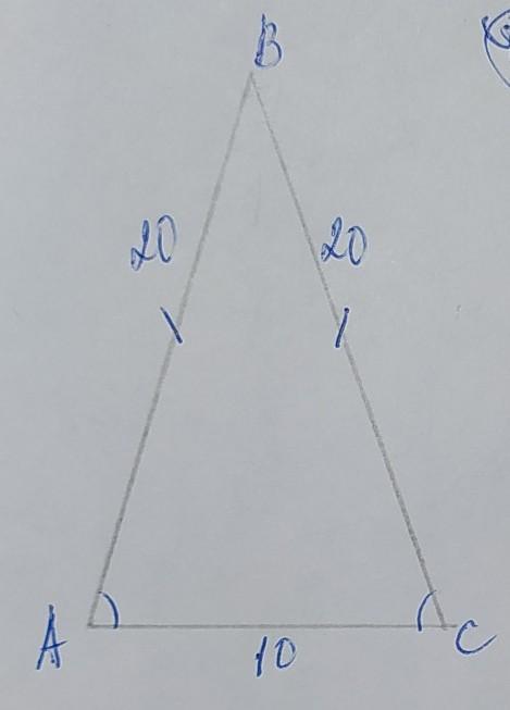 Сумма двух любых сторон треугольника всегда больше одной из них, и так как треугольник равнобедренный, то 2 боковые стороны в нём равны между собой. Поэтому боковыми сторонами в данном случае будут стороны по 20см каждая, а основание=10см.