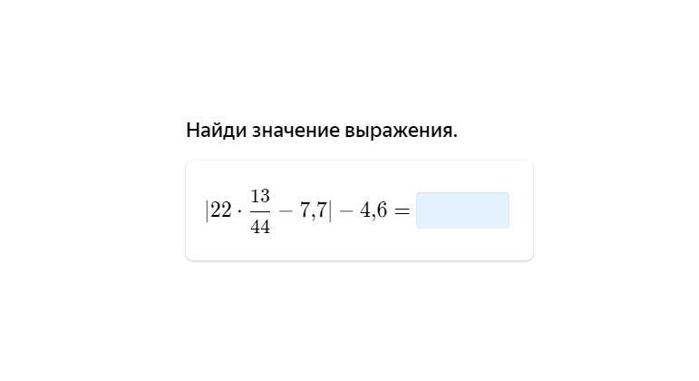 Ответ: |22× 13/44 - 7,7| - 4,6= -17/5= -3,4