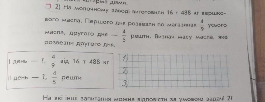 9160/5* 4=7328 kг масла відвезли у 2 день