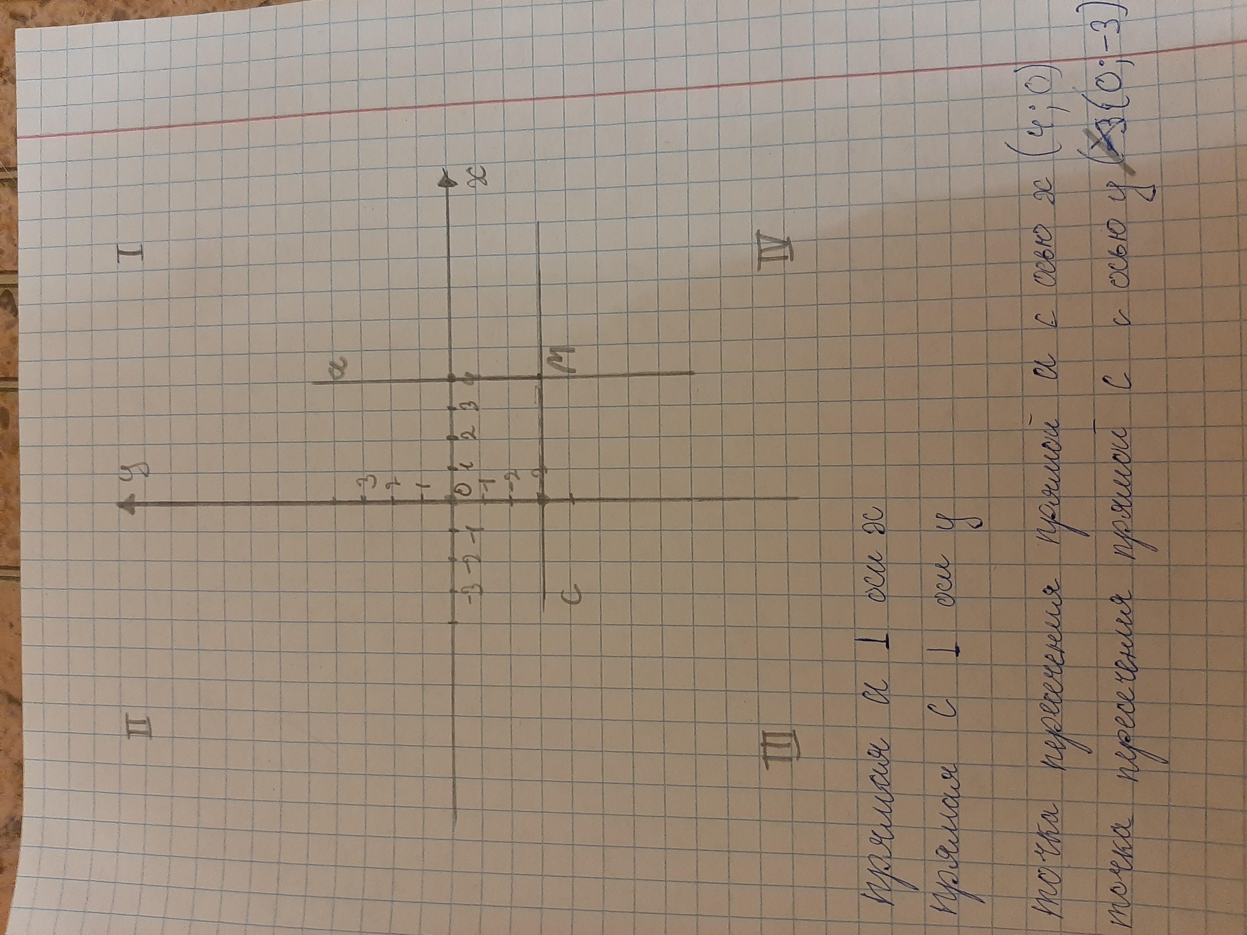 Через точку M (4: -3) проведите, прямые перпендикулярные к осям кординат. Найдите координаты точек пересечения этих прямых с осью абцис и осью ординат.