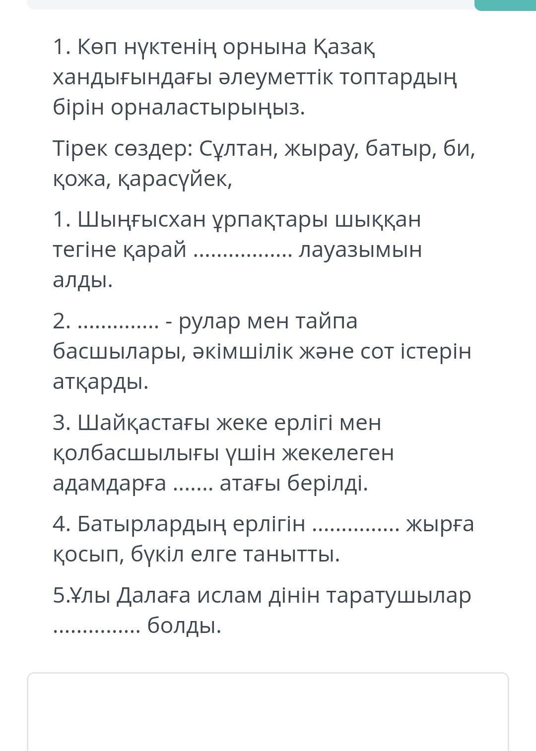 1)Сұлтан,2)би,3)батыр,4)жырау,5)қожа