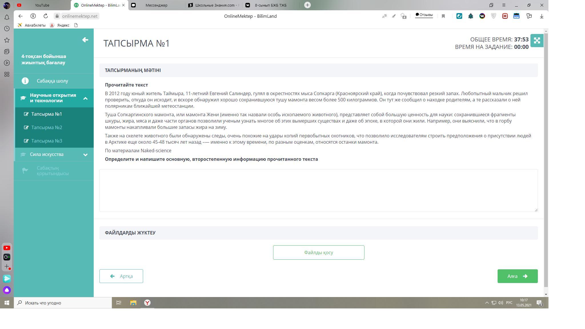 Определите и напишите основную, второстепенную информацию прочитанного текста