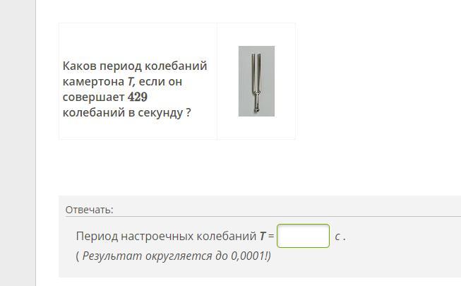 Каков период колебаний камертона T, если он совершает 429 колебаний в секунду ?