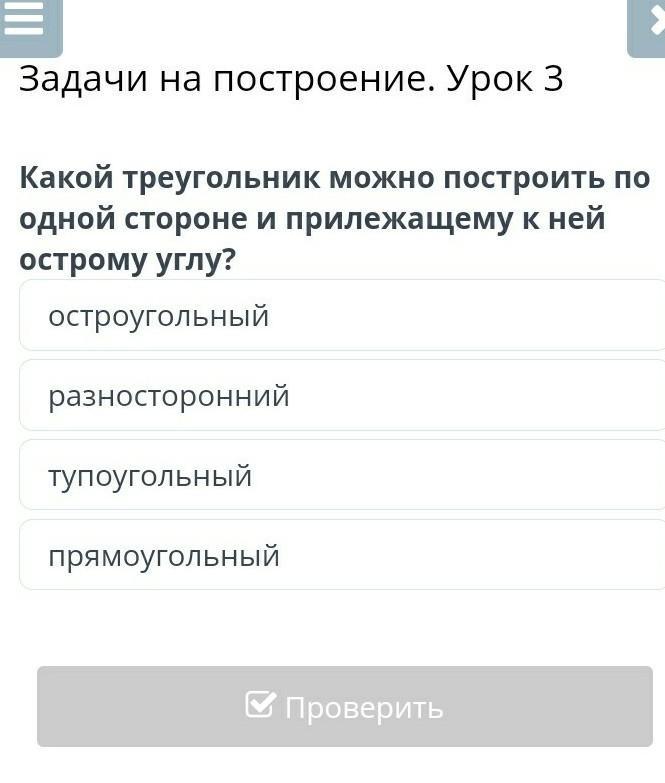 Какой треугольник можно построить по одной стороне и прилежащему к ней острому углу?