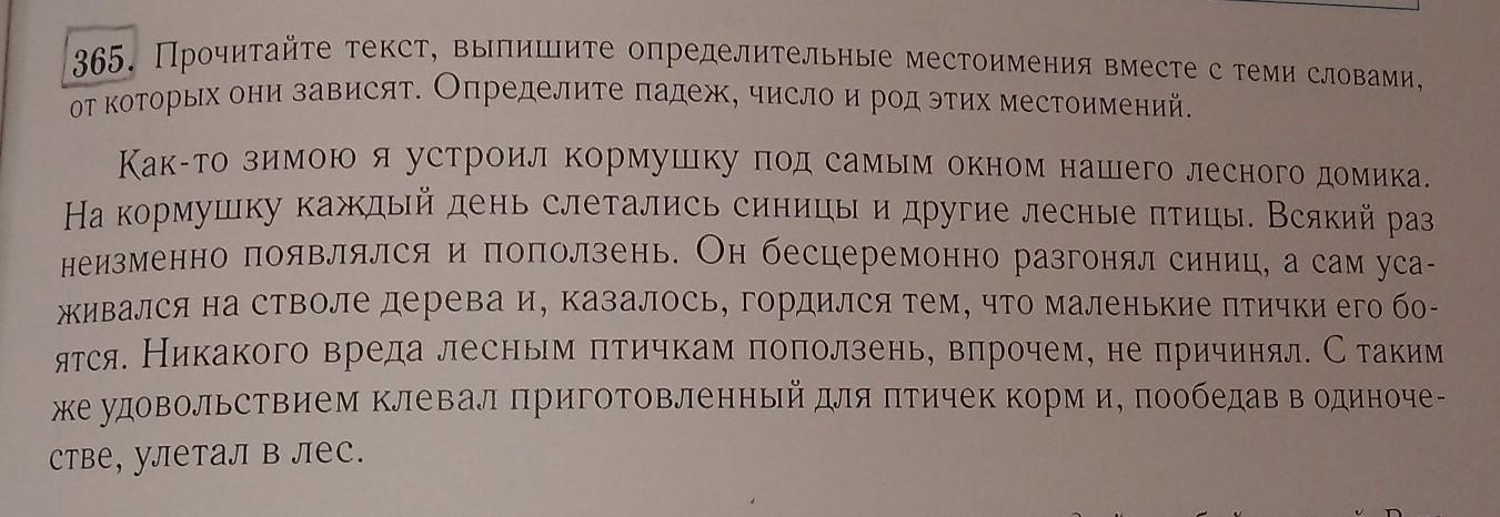365. Прочитайте текст, выпишите определительные местоимения вместе с теми словами,