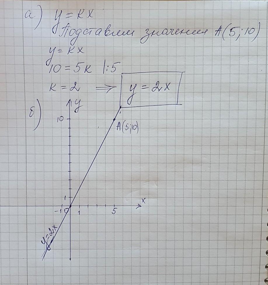 а)Запишите формулу прямой пропорциональности проходящий через точку A(5:10).