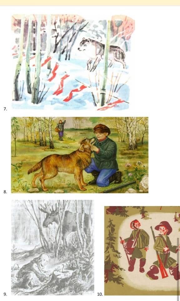 Напишите кратко, какой эпизод изображен на каждой иллюстрации.
