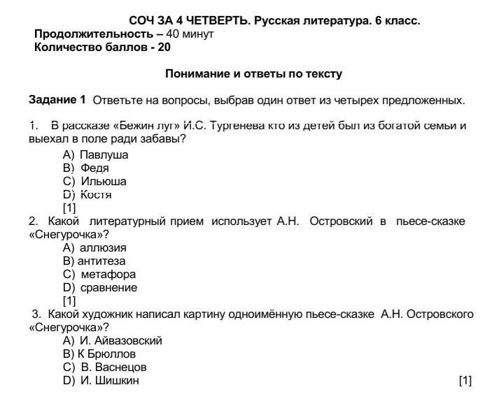 задание 1 Ответьте на вопросы, выбрав один ответ из четырех предложенных.