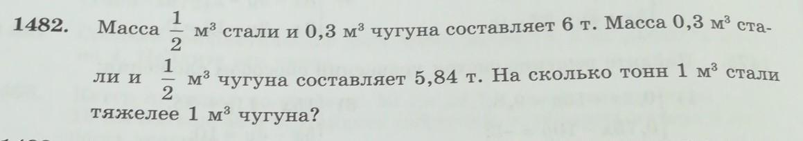 Масса м3 стали и 0,3 м3 чугуна составляет 6 т. Масса 0,3 м3 ста-