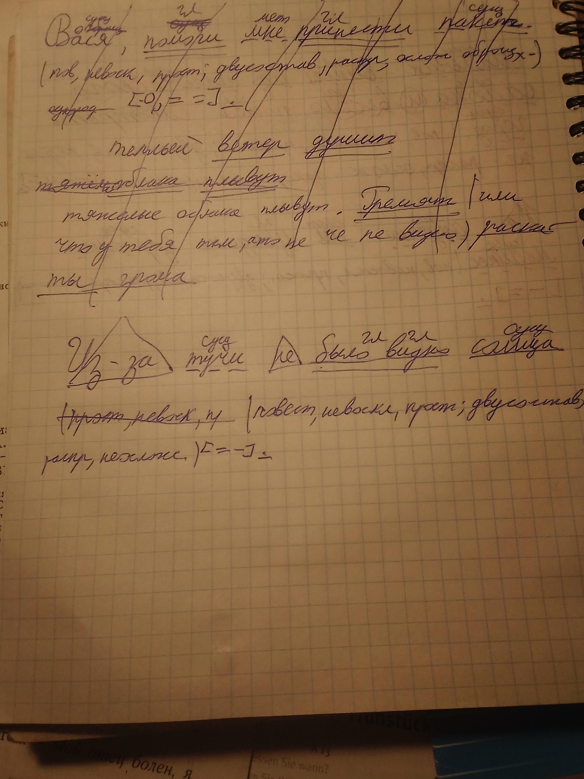 синтаксический разбор предложения из-за тучи не было видно солнца