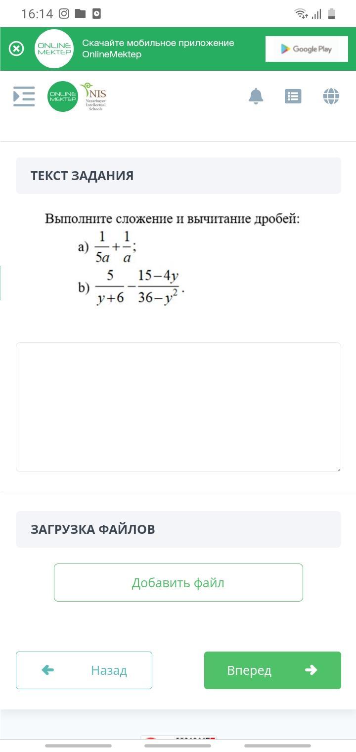 ВЫПОЛНИТЕ сложение и вычитание дробей:b) 5/y+6 - 15-4y/36-y²