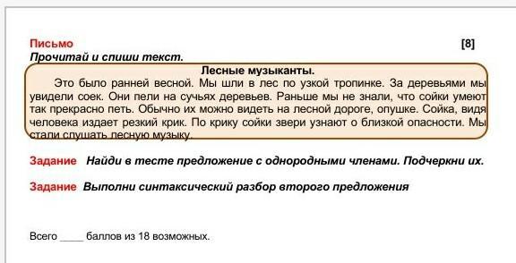 Мы шли (двумя чертами, глагол) в (предлог) лес (дополнение, существительное) по (предлог) узкой (прилагательное, волнистой чертой) тропинке (дополнение, существительное)