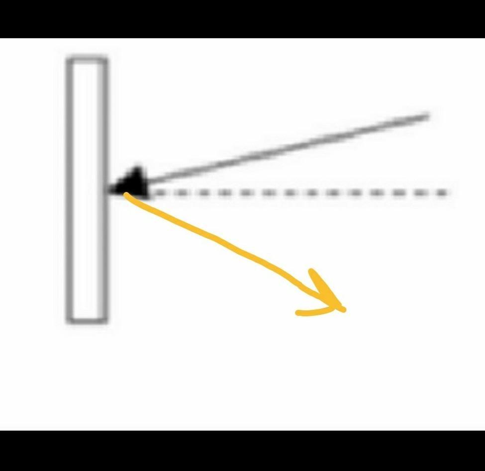 1) Постройте дальнейший ход луча в плоском зеркале, изображенного на рисунке